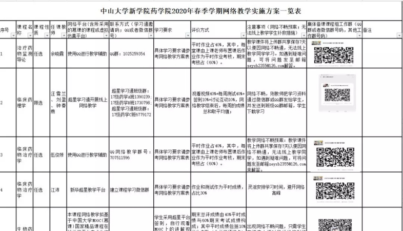 《太阳成集团tyc122ccvip2020年春季学期网络教学实施方案一览表》
