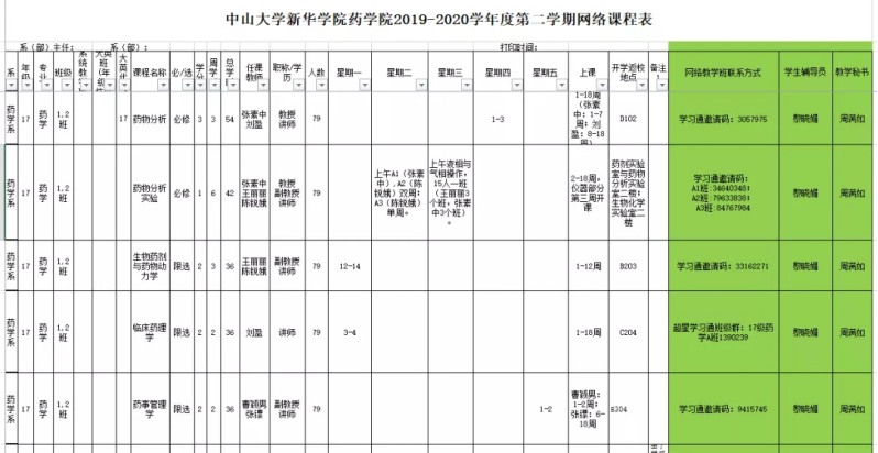 《太阳成集团tyc122ccvip2019-2020学年度第二学期网络课程表》
