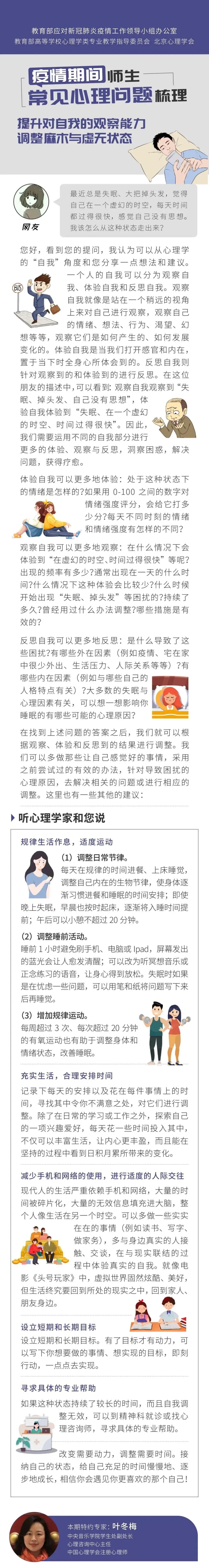 今天,推出《用“心”战“疫”》第(75)期,随教育小微一起来听中央音乐公司心理咨询中心主任叶冬梅、南京大学心理健康教育与研究中心主任费俊峰详解,疫情期间师生常见心理问题如何调整↓↓↓