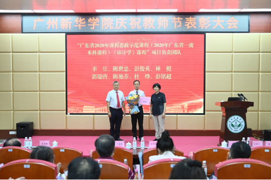 王庭槐董事长、周云书记为“广东省2020年课程思政示范课程(2020年广东省一流本科课程)课程:《审计学》”获奖团队颁奖