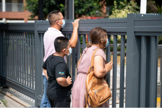 隔着校门的张望,是父母无言的牵挂