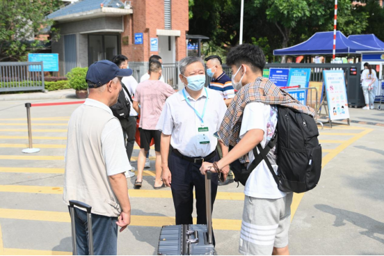王庭槐董事长(右一)在报到点与新生热情打招呼