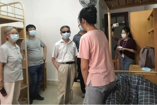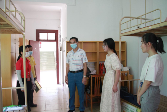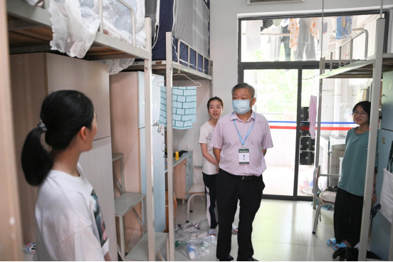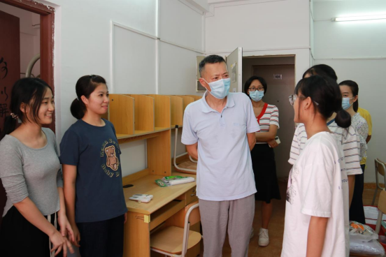 杨卫华纪委书记、副监事长(右三)走访新生宿舍与新生亲切交谈