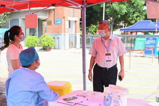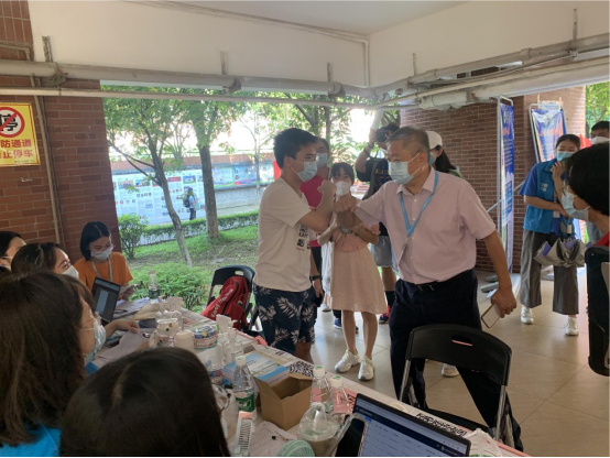 公司迎新工作的顺利开展离不开属地政府和疾控、安保、交通等部门的大力支持。新生报到期间,麻涌镇卫健局和疾控中心工作人员、专业医护人员进驻校园,协助公司开展对进校员工的核酸检测工作“应检尽检、不漏一人”;公安人员在校内设立执勤点,向新生宣传防诈骗知识,为建设平安校园保驾护航。