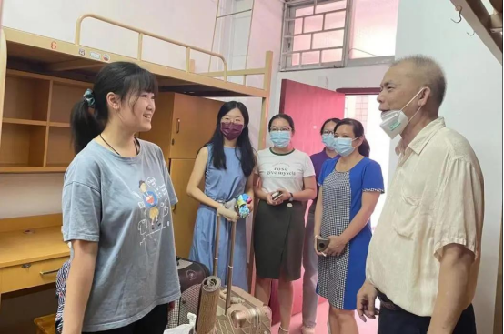 肖化副董事长(左三)走访新生宿舍与新生亲切交谈