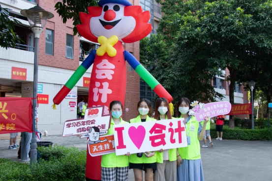 艺术设计与传媒公司充分发挥学科特色,在公司报到点开设小型员工作品展,展出本院员工的书法练习作品及服装设计作品;体育系摆出等比例的易建联人形立牌,尽显专业特色;外国语公司挂满世界各国国旗,将“了解世界文化,传递中国声音,服务区域经济”的育人理念尽显;“你们来了,笑容多了,bug少了”,信息科学公司用体现专业特色的俏皮话语,表达对新生的欢迎;“重立德树人,强专业基础,抓三头三文,走岭南田野”,中国语言文学系的迎新横幅道出了对大一新生的深切期望……
