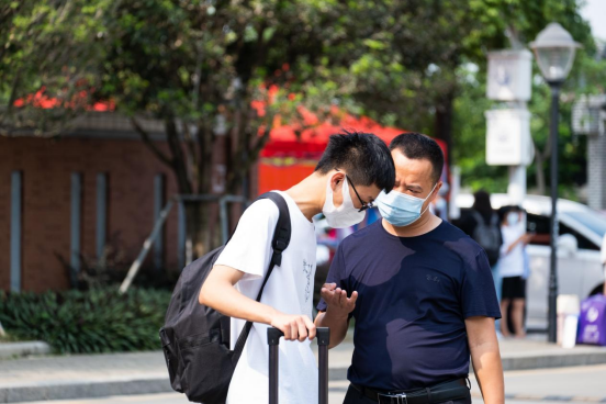 2021级新生在工作人员和志愿者的引导下,持48小时核酸检测阴性证明、粤康码绿码、行程卡(14日内无中高风险地区旅居史)、ixh健康码,测温正常后进入校园。东莞校区新生进入校园随即进行第二次核酸检测,在志愿者的陪同下前往各二级公司报到。广州校区新生将在报到次日统一组织全员核酸检测。