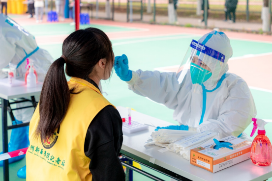 校团委李丹琳老师表示,此次的核酸检测前期工作做得很扎实。在接到公司通知后,校团委方面立即开展准备工作,紧急招募志愿者。志愿者们的工作安排有条理,配合默契,采样现场各环节工作流程顺畅。希望在疫情常态化下,同学们能够不忘初心、保持积极的学习心态,坚持朝向自己的目标前进。