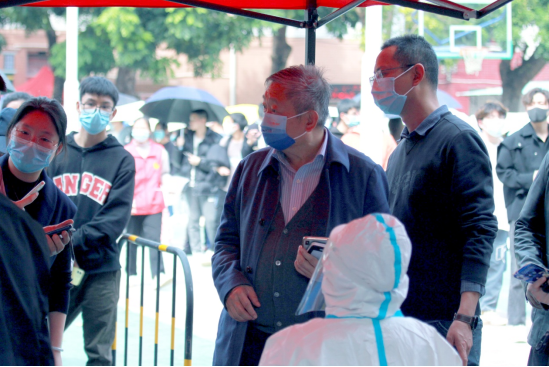 公司副书记副董事长蓝永金在东莞校区核酸采样现场视察