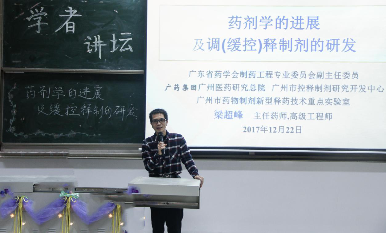 本次学者讲坛邀请了梁超峰教授,他给同学们带来一场主题为药剂学的进展以及调(缓控)释制剂的研发的讲座。